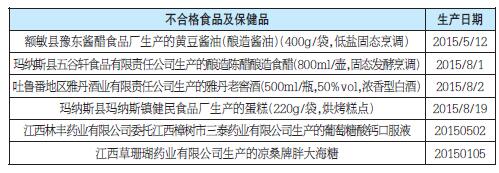 新疆网讯(记者牟敏 实习生雷飞)12月2日,自治区食品药品监督管理局公布了2015年第6期国家食品安全监督抽检信息,6个批次的不合格食品(含保健食品)被曝光。