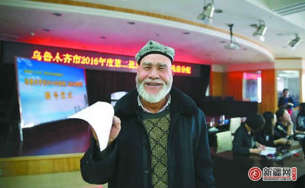 11月7日,吐尔逊·艾合买提领到公共租赁住房认租通知书后,开心地笑了。他选了一套春和怡苑小区的公租房,一家三口再也不用挤在30多平方米的出租屋里了。(记者蒋晓摄)