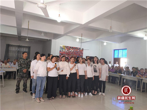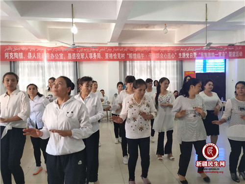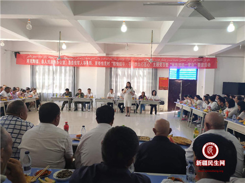 参加活动的干部群众在一起边吃边聊边欣赏干部群众同唱《爱我中华》,文化队表演的恰恰舞和麦西来甫舞蹈赢来了热烈的掌声和高潮,共同祝福节日的快乐。