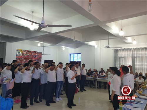 尔后,县政府办公室驻亚格恰克村“访惠聚”工作队副队长支英杰同志带领全体党员重温入党誓词,并讲解端午节传统民俗。随后,县退役军人事务局副局长图尔迪古丽·阿卜杜拉进行了发声亮剑。