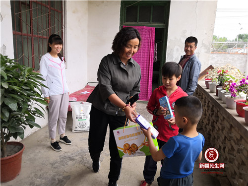 “我给你点建议吧,你的亲戚是贫困户且家中还有在校的学生,我们可准备砖茶、冰糖、水果、米面油,但我想你可结合家庭情况为其购买文具用品、玩具等,鼓励孩子好好学习,增强孩子学习的信心。”第一书记玛热古丽·沙衣木说道。