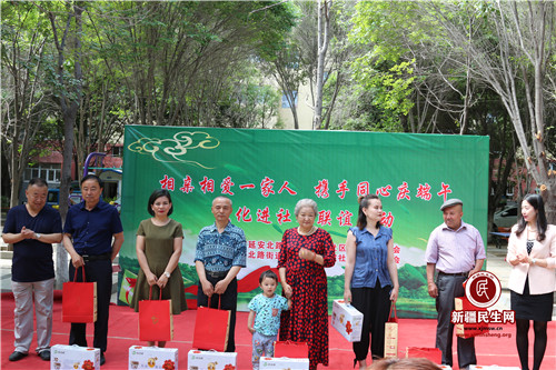 昌吉市红十字会党组书记、常务副会长邹国忠同志为辖区大病患者李菊香发放了3000元大病救助金;“访惠聚”工作队队员特意为8位独居老人、10对结对亲戚赠送了粽子、牛奶、酸奶等节日礼品,让大家在节日里感受社区大家庭的温暖。
