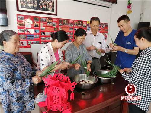 端午节作为中国传统节日,自古以来便有吃粽子、划龙舟等节日活动。“访惠聚”工作队干部和村干部为“亲戚们”精心准备了各种水果和包粽子的材料,折粽叶、装糯米、放馅料,一个翻转,一个对折,这粽子就已经成形一大半了,剩下来的便是用棉线将粽子捆包起来,瞬间变成了有棱有角的粽子。“访惠聚”工作队队长纪清华对村民们讲述端午节的来历和传统民俗。同时,结对亲戚也带来了亲手炸的馓子和油果等少数民族特色美食。