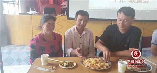 工作队员包了粽子,准备了糖果,村民带来了自己做的馓子和精心准备的抓饭。村干部主动邀请亲戚品尝自己包的粽子,村民也给亲戚送上自己炸的馓子,一起品尝抓饭,其乐融融,大家完美的融入了一起。随着活动音乐的响起,大家一起跳起了麦西莱普,彼此之间,加深了友谊,增进了了解。
