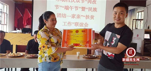 新疆民生网(王金婷、阿曼古丽·吐尼亚孜)农历五月初五端午节,是我国夏季最重要的传统节日,是中华民族精神家园的独特遗产。2019年6月6日,在端午节来临之际,拜城县康其乡尕勒村村委会举行了“喜迎端午节,民族团结一家亲”暨“扶贫工作”联谊活动,访惠聚驻村工作队员与村民共迎端午佳节,为尕勒村优秀的民族团结代表人员颁发奖状。
