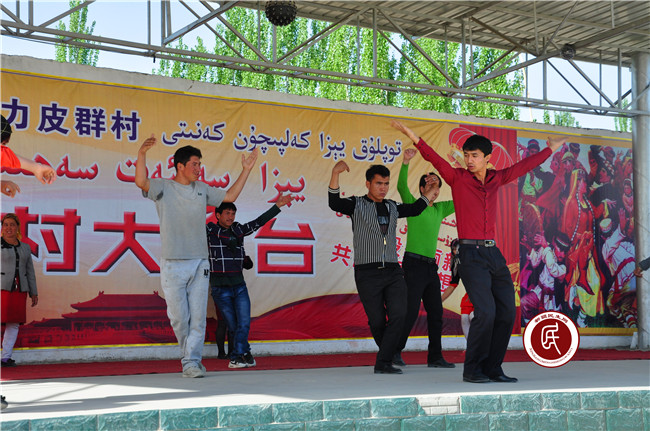 “访惠聚”活动开展以前,受极端宗教氛围的影响,村民们有歌不敢唱,有舞不敢跳,丧礼不能哭,婚庆不能笑,村里已许久不见往日的欢声笑语。工作组入住后,就文化宣传工作多次与村班子沟通交流,并主动与乡文化站的两位老艺人阿那耶提·阿巴克和布拉比耶姆·艾薇拉座谈,通过谈心谈话交流文艺工作的看法。为弘扬民族传统文化,抵制极端宗教影响,两位老艺人不顾年老多病,毅然决定挺身而出,协助工作组和村班子组建文艺队伍。起初,村民们或多或少有些顾虑,工作组在了解这一情况后,一方面和村班子、老艺人亲自上门做工作,并利用每周一的村民大会宣讲政策,鼓励大家踊跃报名;另一方面,在农闲、婚嫁和节日时,由老艺人带领大家即兴表演,共庆良辰吉日。随着去“极端化”工作的深入推进和极端宗教氛围的逐渐淡化,在工作组、村班子和老艺人的带领下,大家慢慢地重新回到了舞台上,田间地头、巷尾农院也渐渐地再次响起了大家的欢声笑语。