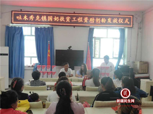 新疆民生网(徐良聪)2019年6月14日,温宿县吐木秀克镇按照地区、县国奶扶贫项目工作部署,积极推进吐木秀克镇国奶扶贫工作,以达到早期阻断婴幼儿因奶致病因病致贫,助推贫困家庭改善贫困,健康扶贫。