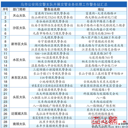 乌市29个便民警务站开通交通违法处理