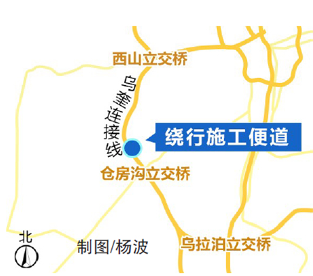 施工期间所有通行西山方向车辆在3595公里+590米处,也就是经过仓房沟立交桥2公里位置,进入施工便道通行。施工便道为两车道的沥青路面,进入施工便道后,大车靠右行驶、小车靠左行驶,便道全线禁止超车。一旦发生轻微刮擦事故,交警提示您请尽快拍照撤离现场,避免导致交通拥堵。