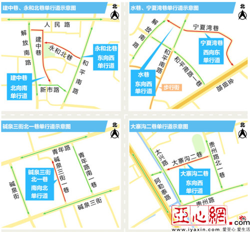 二、永和北巷(和平南路至建中巷之间路段)设置为由东向西方向的单行道,禁止车辆由西向东方向行驶。