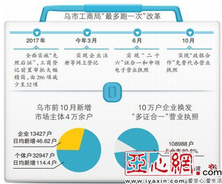 昨日,记者从乌市工商局了解到,今年继续推动商事制度改革,深化“放管服”和“最多跑一次”改革,截止到目前已实现37项工商业务办理“最多跑一次”,提前完成年初预定目标任务,已实现80%工商业务“最多跑一次”改革。