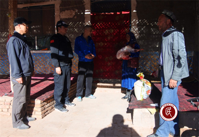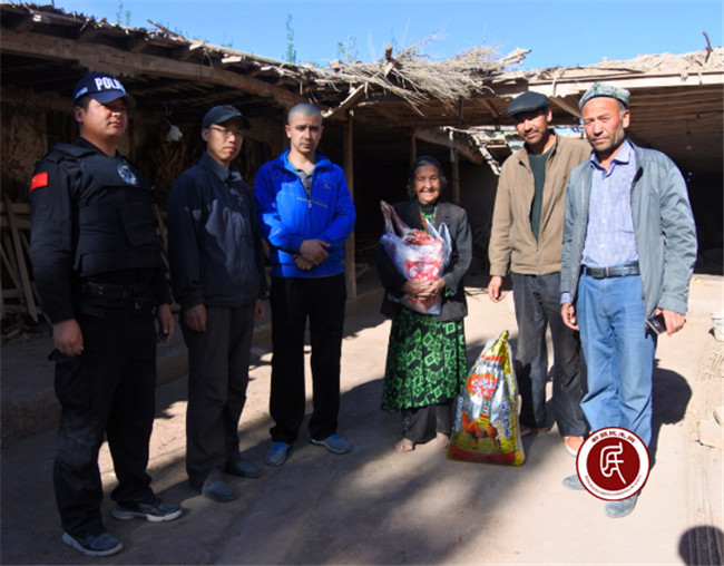 新疆民生网讯 4月20日一大早有村民反映,村里40岁的阿萨拉姆家因丈夫去世、孩子还小,前些日又急于还贷款,现一家四口无米可炊;78岁的阿娜古丽早年丧偶,无儿无女,前些日子又摔伤了腿行动不便,无人照料。工作组立刻研究,会同村支书阿不力米提、村警阿力木江一起,带着自用刚买回的米和肉前去看望。
