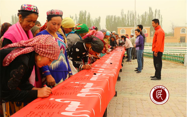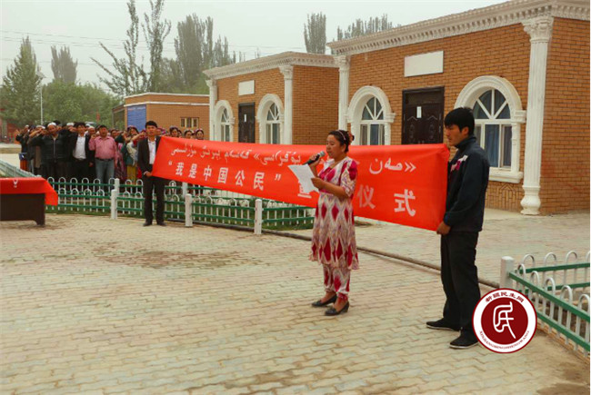 5月2日清晨,诺其巴扎村的村民们头戴小花帽,身穿节日的盛装,佩带着漂亮的服饰,从四面八方聚集到村民广场,到处洋溢着节日的氛围。按照每周一的惯例,首先村民广场上隆重举行了升国旗仪式。随后,村副支部书记宣布从5月份起每月的第一个星期一将举行“我是中国公民”的宣誓活动,并带领大家举起右手庄严宣誓:我是中华人民共和国公民,忠于我的祖国和人民,遵守宪法和法律,履行公民的责任和义务,践行社会主义核心价值观,做一名爱国、敬业、诚信、友善、守法、知礼的中国公民。活动最后,每一位宣誓人都积极踊跃地参加了横幅签名活动,表达了“崇尚文明科学,远离极端思想”的决心和信心。