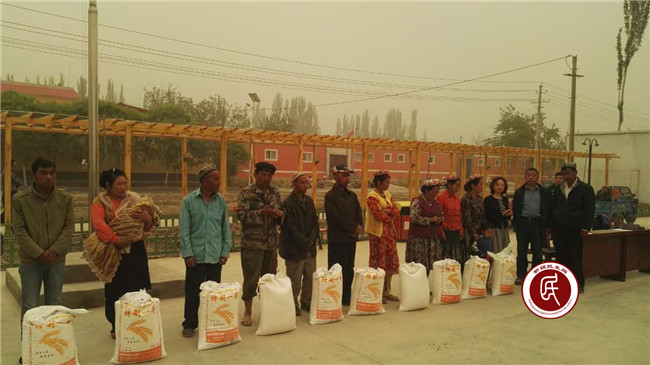为了保障贫困户基本的生活需要,工作组给村里十位最困难的贫困户发放了爱心面粉;同时,为了表彰劳动中表现突出的妇女,为22位妇女同志赠送了纱巾。一袋袋爱心面粉送去了党和政府的亲切关怀,激励贫困户更加团结一心,化关怀为动力,艰苦奋斗,努力实现脱贫致富;一条条纱巾把加依村妇女装扮的更加美丽,使她们更加自信、充分活力,以现代文化为引领,增加对未来美好生活的向往和动力。
