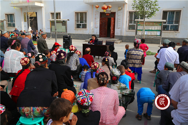 新疆民生网讯 (通讯员 李宁)按照英吉沙县委统一安排部署,近日,自治区发改委住英吉沙县萨罕乡依坎库勒村工作组开展了一次以《致全县各族人民群众的一封信》为主要内容的宣讲活动。工作组成员阿依努尔用通俗、流利的维吾尔语向村民们讲解了关于非法宗教活动、非法宣传品、非法网络传播的法律法规知识。