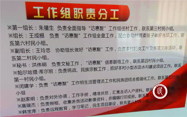 昌吉市水利局住三工镇庙工村工作组住村后,结合单位管理机制将组内所有工作分解到人,并将年度实施的重点项目公示上墙,凡是来到工作组的人都可以一目了然的了解工作组的目标和方向。二工村工作组长张跃武表示这个办法很好,既做到了跟踪落实,又可以群众监督,真是两促进两不误,回去准备效仿推广。