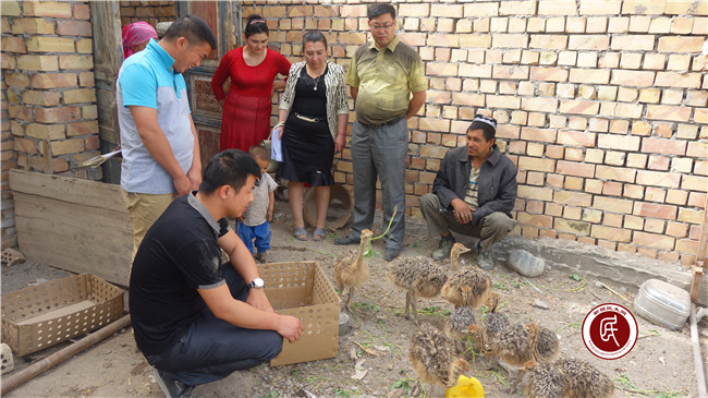 今年2月26日,工作组在入户走访期间发现4小组贫困村民沙德尔·依明由于缺乏资金、未能办理许可证(国家非重点保护野生动物驯养繁殖许可证)等原因至今未能实现自己养殖鸵鸟的梦想。工作组了解情况后,第一时间协调相关部门帮他办理许可证,并在资金、技术、政策等方面全力支持他的特色养殖。