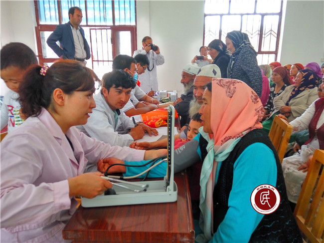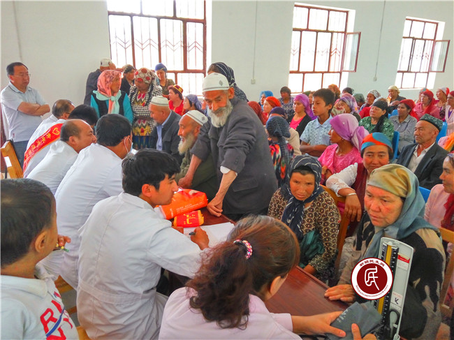 新疆民生网叶城讯(通讯员 王军 贺芹)5月28日,叶城县社保局住乌吉热克乡欧吐拉硝尔艾日克村工作组邀请县人民医院医务人员在该村开展“卫生下乡·爱心义诊”活动,进行了卫生防疫、科普知识、计划生育政策宣传咨询和身体健康检查等贴心服务,惠及500余人,用“微行动”暖“千家心”。许多邻村的村民也闻讯赶来,受到了广大群众的一致好评。