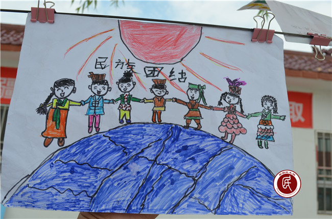 活动在隆重的升国旗唱国歌仪式中开始,孩子们为前来参加活动的领导和来宾佩带了红领巾,小学生代表阿依努尔向全村少年儿童发出“爱祖国、讲团结、争做民族团结小使者”的倡议。整个活动以“热爱伟大祖国,加强民族团结”为主题开展了民族团结双语故事大赛、儿童绘画比赛,以及爱国、感恩为主要内容的知识问答以及才艺表演、互动小游戏等系列活动。让孩子们在轻松愉快的气氛中懂得感恩祖国,加强民族团结,传递正能量,引领新风尚,以孩子促家庭加强民族团结进步教育。