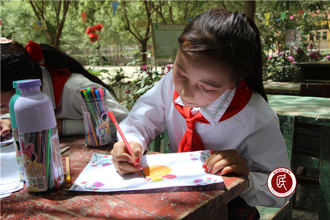 升旗仪式结束后,小学生们为工作组的叔叔们戴上了鲜艳的红领巾,在工作组副组长阿不力克木·木加帕尔的高声领读下,全体师生、工作组进行了庄严的“争做民族团结小卫士”宣誓仪式,“我宣誓,我要像爱护自己的眼睛一样爱护民族团结,像珍惜自己的生命一样珍惜民族之情;牢记使命,勤奋学习,做有益于祖国的人……。”随后,孩子们共同在“手拉手、心连心、争做民族团结小卫士”的横幅上郑重签名,表达珍爱民族团结、维护民族团结的信心和决心。签名结束后,孩子们身着艳丽的民族服装,表演了精彩的文艺节目;武术队的孩子们表演了精彩的武术套路;20名小学生现场创作民族团结题材的绘画。