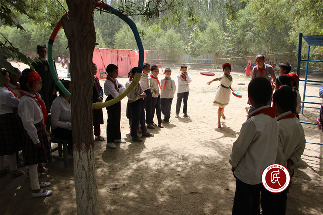 接着,工作组带领孩子们举办了趣味运动会。孩子们结伴在校园里像逛公园一样,随意选择自己喜欢的运动项目:珠行万里、心心相印、套圈游戏、跳绳比赛、羽毛球比赛、投飞盘、掷飞镖……,整个校园欢声笑语,成为欢乐的海洋。六年级的苏比努尔开心的说:“这个六一儿童节,我们过的真开心,这么多趣味活动,我们玩的真尽兴。”
