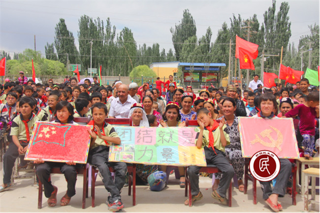 新疆民生网讯 (通讯员 刘让群)5月30日,自治区发改委住英吉沙萨罕乡18、19村工作组联合当地村党组织、学校和幼儿园共同庆祝 “六一”国际儿童节,并举行“听党话、跟党走,我成长、我快乐”文艺演出和图书捐赠仪式。