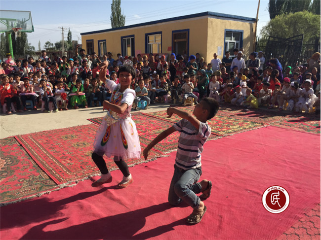 活动内容丰富多彩,现场人声鼎沸。萨罕乡栏杆小学和萨罕乡栏杆幼儿园的同学们为村里的小朋友们及家长奉献了一场精彩的文艺大餐。甜甜的歌声、优美的舞蹈、好听的故事不时引来阵阵喝彩,一时间欢乐的笑声、动感的节奏和着现场的掌声让村委会俨然成为一个热闹的“巴扎”。随后的娱乐游戏更是将活动推向高潮,两人三足、双语传话等团体协作游戏都营造了比、学、赶、帮、超的比赛氛围,让孩子们在无尽的欢乐中学会团结协作,互帮互助。欢乐的游戏将活动拉到了尾声,获奖的孩子们拿着文具盒、水彩笔等崭新的文具,脸上都露出了灿烂的笑容。