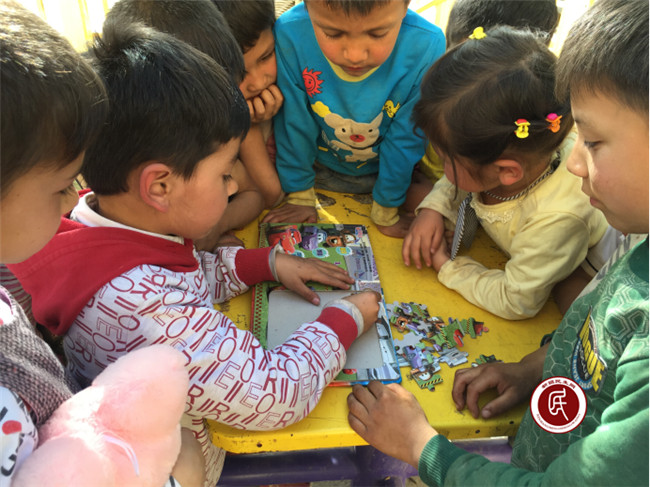 和孩子们一起玩拼图
