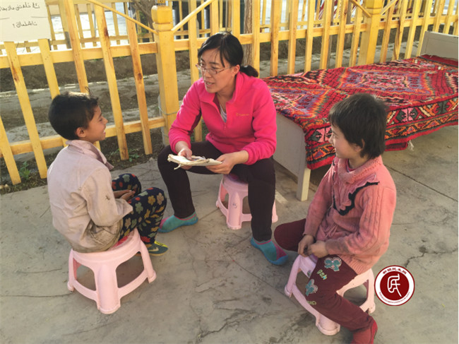 孩子是村里的未来和希望,工作组自住村以来就一直关心孩子们的健康成长。我们还有意将村委会大院建成“第二个校园”,在这里与学生们一起娱乐一起聊天。闲暇时候的傍晚,工作组都在大院里与孩子们打篮球、跳绳、讲故事、聊天……在潜移默化中向他们传播现代文化,防范抵御极端思想向学生渗透,让孩子们了解美丽的新疆,看到更广阔的天地,至此我们彼此间也建立起了深厚的感情,民族团结的种子也在孩子们的心里默默种下。孩子们常常主动走过来用熟练的汉语说着:“早上好、您好、谢谢你、漂亮姐姐、我喜欢你……”。