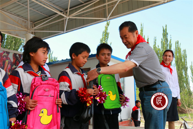 19村工作组组长闫泽武代表工作组为孩子们捐赠书包。