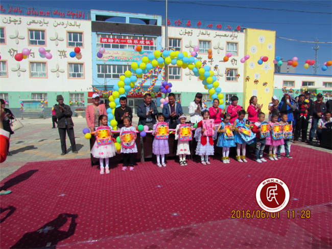 活动当天,整个幼儿园内花团锦簇,笑语欢歌,处处洋溢着喜悦和欢乐。为了使孩子度过一个愉快、难忘而有意义的“六一”儿童节,克州吐尔尕特口岸管委会扶贫办住乌尔多社区“访惠聚”工作组精心准备了价值3000元的书包和智能玩具作为儿童节礼物,赠送给双语幼儿园的孩子们,希望通过对幼儿园孩子的助学工作,在孩子幼小的心灵中播下希望的火种,让感恩祖国从心开始,让温暖通过童心传递。