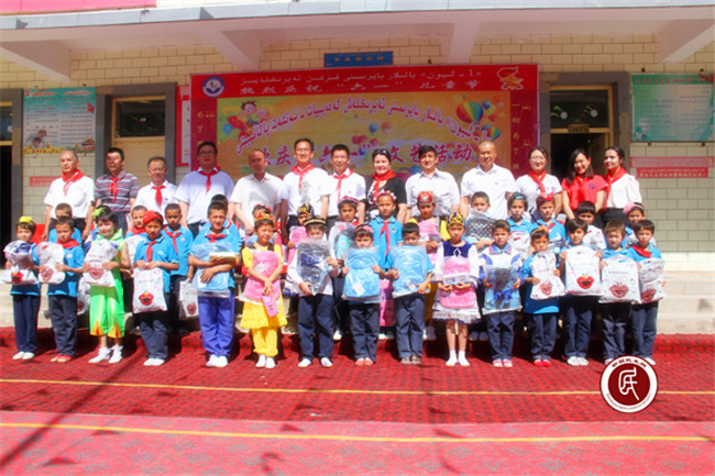 本次活动共捐赠135个新书包,并为村内品学兼优的儿童赠送7套爱心文具。同时,工作组的阿依夏木•巴吾都大姐为她自愿资助的16名小学生赠送了礼品。东西虽小,但每一个书包,每一份文具,每一份礼品都包含了工作组全体成员对小学生的关心关爱,寄托了对他们的美好的祝愿和期望。捐赠仪式结束后,孩子们载歌载舞地表达自己收到礼物后的喜悦和感激,整个校园里欢声笑语,洋溢着浓郁的欢乐气氛。