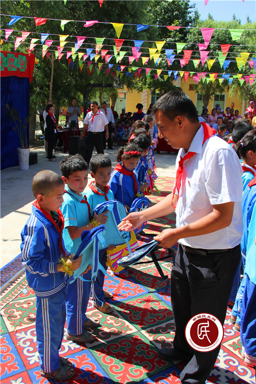叶城县人社局、社保局住乌吉热克乡工作组筹资5000余元,在该乡阿亚格硝尔艾日克村小学为孩子们赠送衣物、书包、文具等节日礼物,为孩子们送去了温馨的祝福,鼓励孩子们爱祖国、爱生活、爱父母、爱家乡,不畏艰险、发愤图强,脚踏实地实现远大志向,建设家乡、回报祖国。孩子们捧着这些精美的礼物喜悦之情溢于言表,纷纷表示要好好学习文化知识,将来为建设祖国出力。
