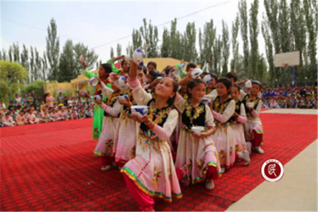 新疆民生网讯 6月2日,英吉沙县萨罕乡依坎库勒村村委会的大院里,一场迟来的庆“六·一”活动热闹地进行着,为了不与学校的“六·一”活动冲突,自治区发改委住村工作组特意将村里的“六·一”活动安排到6月2日举行。