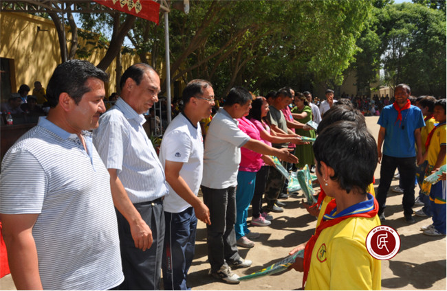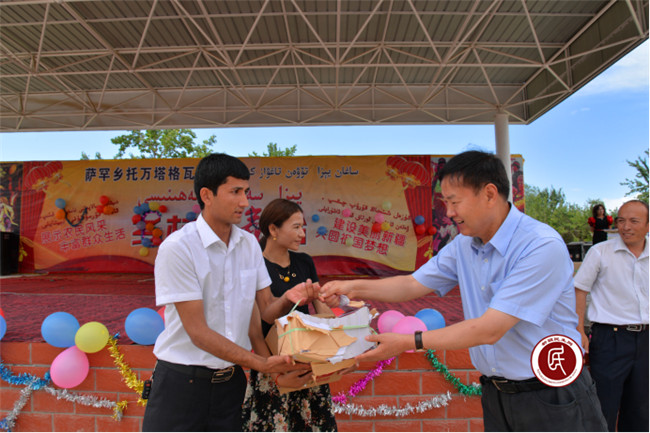 各工作组提前与本村学校对接,了解学生们在学习生活中的所需所缺,有针对性地协调解决学习生活用品。其中住英吉沙县萨罕乡18、19村工作组为村小学、联合幼儿园捐赠了价值近3万元的900册少儿课外图书和120套时尚童装;住英吉沙县托普鲁克乡5村工作组为村小学、幼儿园捐赠了500个新书包;住莎车县艾力西湖镇诺其巴扎村工作组为村里孩子捐赠一套价值1万余元的儿童游乐滑梯等。通过爱心捐赠不仅给予了孩子们物质上的帮助,更重要的是熏陶了他们的心灵,让他们学会了感恩,懂得了通过努力学习改变命运、回馈社会。