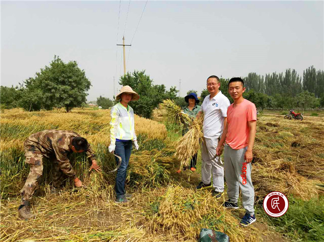 新疆民生网讯 (通讯员 徐大伟)又到一年夏收时,英吉沙县托普鲁克乡克力坪兰干村的小麦已经熟了,虽然村里已经基本实现了机械化收割,但有些田埂和被风吹倒在地面的麦子,收割机是没有办法收割的,还是需要人工收割。俗语说“芒种芒种,连收带种”,在这个抢收小麦的紧张时刻,为了帮助收割有困难的村民颗粒归仓,自治区发改委住村工作组和村委会认真研究,制定了帮扶方案,6月8日一大早就来到田间地头,准备为困难村民抢收小麦。