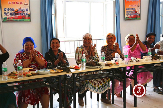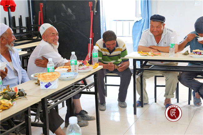 大家边吃边聊,其乐融融。文化在一起交流,思想在一起碰撞,感情在一起交融,共同畅谈抒发着爱国爱疆爱家乡的故事和情怀……