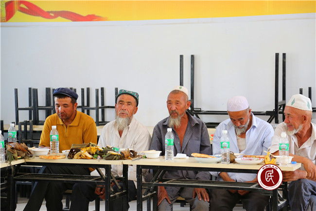 大块朵颐之后,一位维吾尔族党员老大妈站了起来,说道:“我的父亲是党员,我也是一名有着35年党龄的老党员,我的儿子艾买尔·买买提也是党员,他还是我们村的会计,我很欣慰他能跟着党走,配合工作组踏踏实实地为村里的老百姓做一些好事。今天我们和工作组的同志们还有村里的汉族同胞们一起在这里度过咱们中国的传统节日——端午节,我们都是中国人,这是我们共同的节日,我衷心祝福大家节日快乐!”