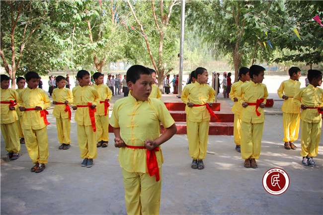 新疆民生网讯 (通讯员 董建伟 青吐尔·吉艾西)男孩们穿着黄色的练功服,一招一式有板有眼,抬手落脚有模有样,个个精神抖擞,这是克依阔小学生武术队在操场上训练。