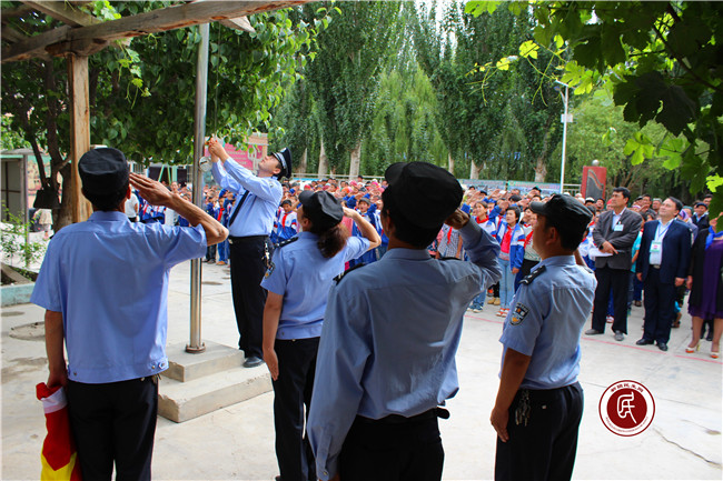 伴随着雄壮的国歌声,全体肃立,所有人员庄严地向冉冉升起五星红旗行注目礼,学生们整齐划一的向国旗敬礼并伴随着音乐唱起了国歌。洪亮的歌声穿透着每个人的心,荡漾在村委会宽阔的大院里,飘进了每家每户,住进了每个人的心里。相信在场的每个人都对国旗充满了敬意,都被孩子们铿锵有力的歌声和强烈的爱国爱家意识所感染。