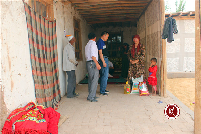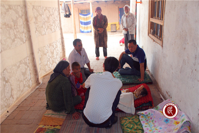 新疆民生网讯 (通讯员 张鑫 帕尔哈提)2016年6月13日下午,喀什地区地税局住伽师县和夏阿瓦提乡夏合亚迪村工作组前往该村5组村民艾依提·吾布力家里,看望慰问患有支气管肺炎的阿卜杜热合曼·艾依提小朋友。