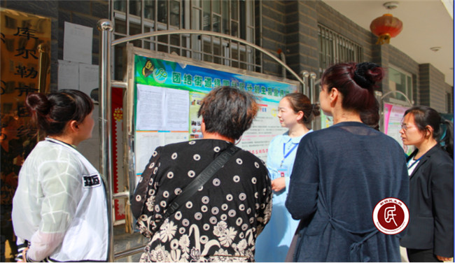 为便于辖区内考生及家长更详细了解2016年高考招生新政策,工作组充分发挥自身优势,通过在社区专门开设宣传栏,及时张贴普通高考报考条件告知单、网上报名流程图、疆内各类院校的招生宣传单等,多渠道宣传政策、报名办法及网上报名流程,对来疆务工人员随迁子女在疆内参加普通高考报考条件进行了面对面的解读,把政策宣传到每一个考生家庭。