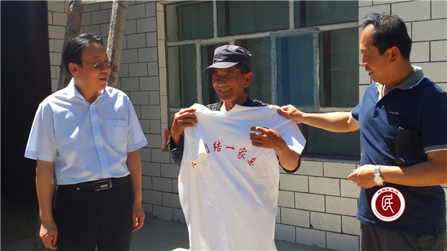 在实地走访慰问活动中,住村工作组与局机关24名党员干部分别来到结对帮扶的24个困难家庭,详细了解他们的生产生活状况、收入来源等情况以及目前面临的困难,并为他们送去面粉和印有“民族团结一家亲”的文化衫。在村民哈里木家中,看到樊国斌书记来看望自己,哈里木紧紧握住他的手不愿分开,他激动地说:“樊书记去年住村给我把病治好了,我现在可以干活挣钱了,日子也一天天好起来了,你这个亲戚我是认定了,下次我到昌吉看你去。”