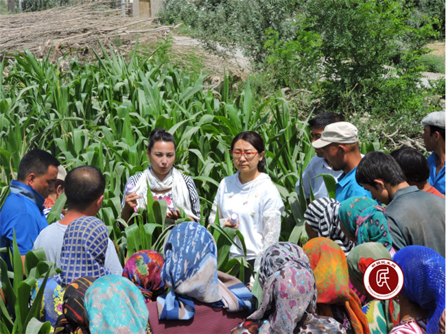 新疆民生网讯 6月21日,英吉沙县农业技术推广中心农业技术专家为托普鲁克乡克什拉克村民进行了病虫害防治专项技术培训,并送来了防治药物,指导群众进行玉米螟防治工作。这是自治区发展改革委住英吉沙县托普鲁克乡克什拉克村工作组落实发展畜牧养殖业实现精准脱贫的工作思路,依托复播玉米新品种高产示范推广项目,再次组织开展的农业技术培训,希望不断提高村民群众的农业生产技术水平,力促由外部输血到自身造血的变化,实现长期稳定的增收致富。