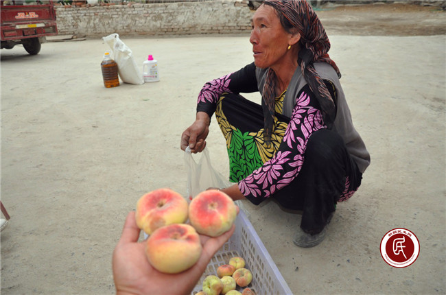阿提汗﹒胡达拜地拿出自家果园的蟠桃让大伙品尝