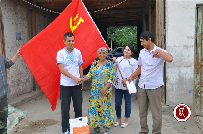 工作组与村干部慰问老党员苏皮﹒托合提