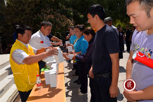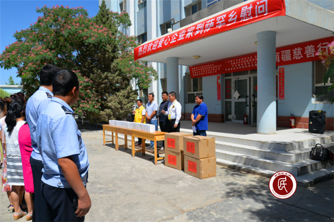 新疆民生网讯 (通讯员 杨安 吴铁城) 6月24日,一场特殊的慈善捐赠仪式在喀什地区英吉沙县萨罕乡人民政府举行,来自自治区妇女儿童发展基金会、亚心网、广东狮子会及六家企业的爱心人士,为乡、村干部,中、小学老师和派出所民警捐赠了300余个水杯和茶叶,同时为他们送去了社会各界的关心和祝福。