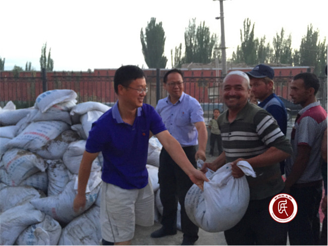 新疆民生网讯 (通讯员 彭莎莎)6月的英吉沙是金黄小麦大丰收的时节,也是复种玉米播种希望的时节。英吉沙县萨罕乡阿热兰干村勤劳的村民们已经将玉米播种下地,如今急需施洒化肥增产。为了减轻村民负担,降低成本,增加收入,自治区发展改革委住村工作组通过多方协调,共筹集有机肥300余袋,总价值2万余元,及时发放到贫困户手中,解决了他们生产的燃眉之急,保证了农业生产顺利进行。