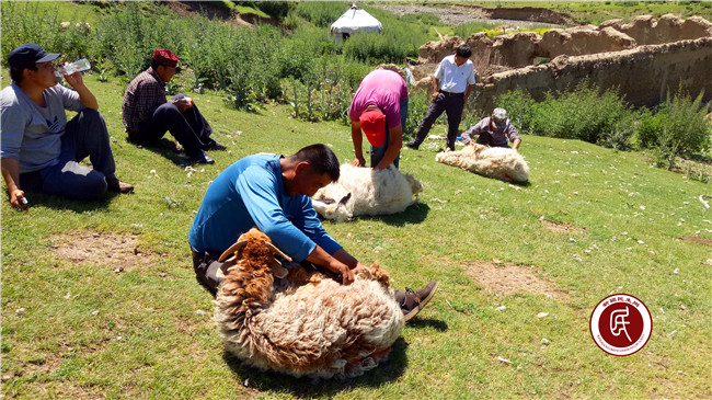 6月26日,住村工作组组长迟文辉带领工作组与村里的党员一起赶往塔塔尔乡牧场为患病的村民葛福春家里剪羊毛。中午时分,骄阳似火,党员们发扬不怕苦、不怕累的精神,熟练的将绵羊绑好,细心地为绵羊修剪羊毛。工作组的好些同志第一次干剪羊毛这样的技术活,为了不让羊受伤,大家小心翼翼,积极请教,逐渐掌握了要领,熟练的操作起来。通过3个多小时的劳动,20多只绵羊全部脱去了厚重的棉衣轻快的在山坡上吃草。