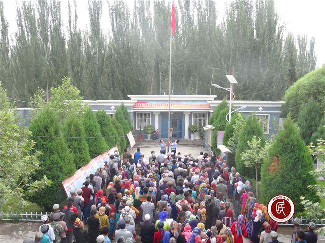 升旗仪式结束后,住村工作组总领队努尔卡那提·艾木如拉带领全体人员,面对着鲜红的党旗,向村民开展了爱党爱国、“去极端化”、“民族团结进步年”、党的惠民利民政策进行了宣传,同时安排部署了“七一”前夕“访惠聚”活动各项工作。村支部书记木合塔尔·司马义就近期村委会工作开展情况向村民们进行了通报。
